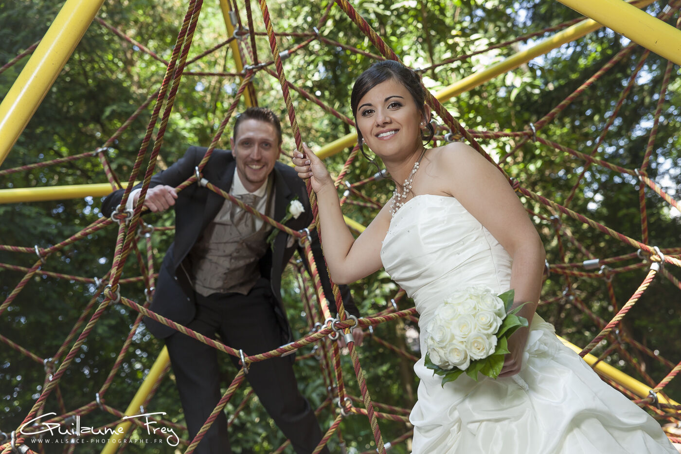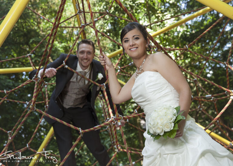 Maquillage de la mariée, coiffure, habillage, photos de couple à proximité du zoo de Mulhouse, cérémonie religieuse, apéritif, … Une journée de mariage épuisante mais ponctuée de belles images, le tout dans une ambiance vraiment très agréable.